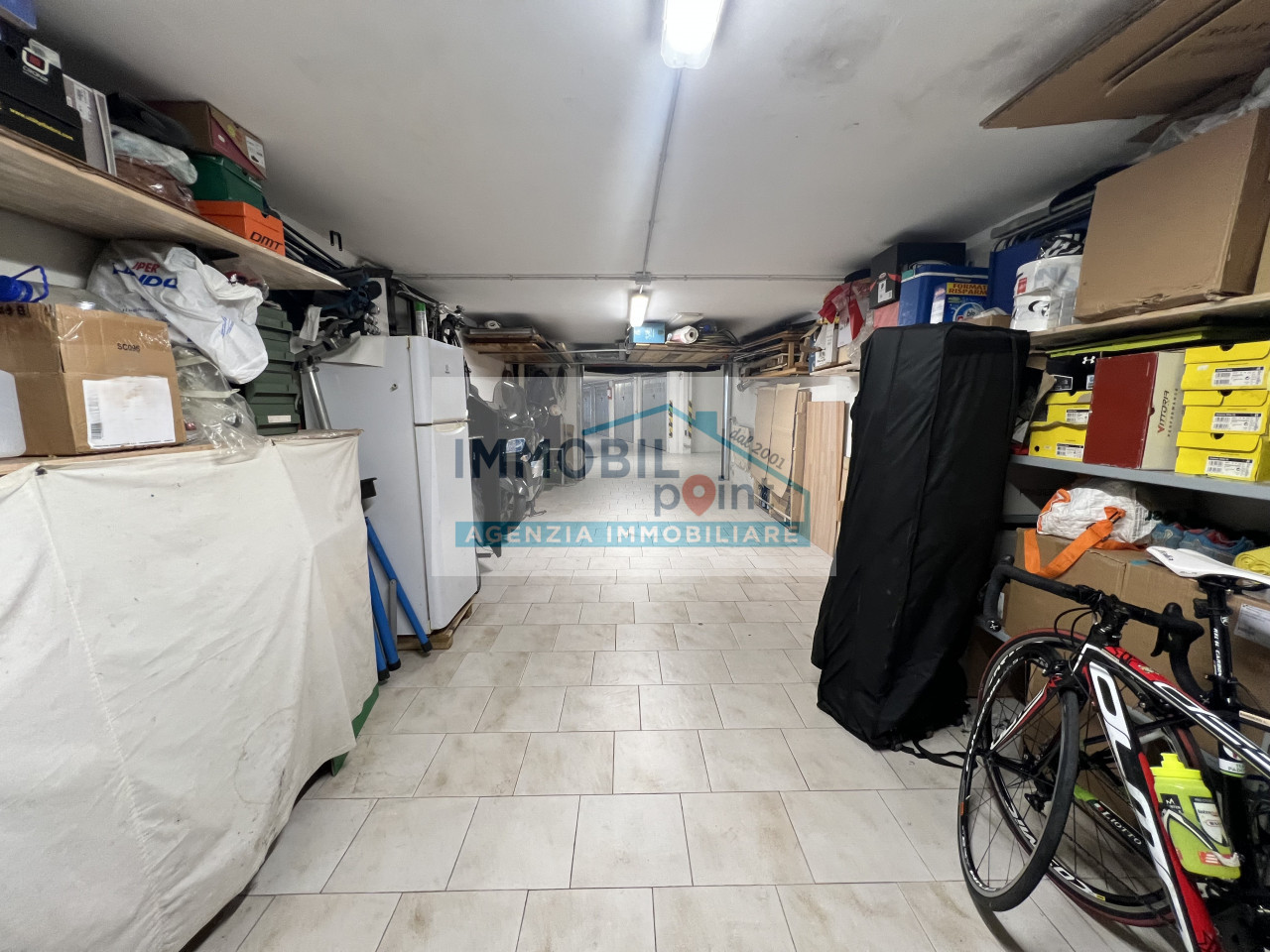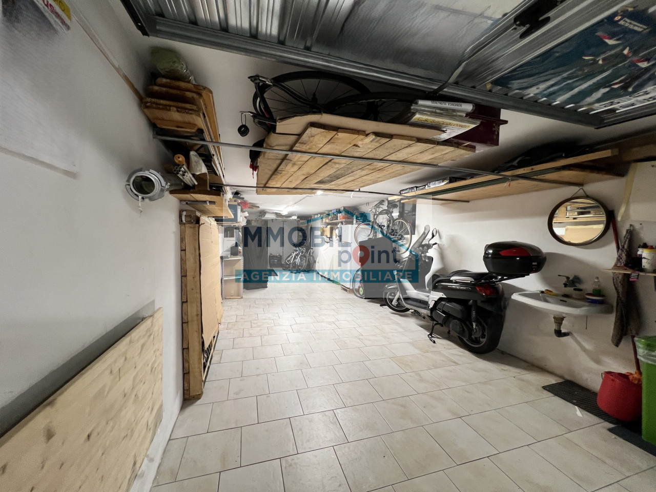 Al piano interrato, collegato da scala interna, troviamo un raro valore aggiunto, un garage privato lungo ben 14 metri (circa 40 mq) perfetto non solo per più auto ma anche bici o attrezzature sportive.